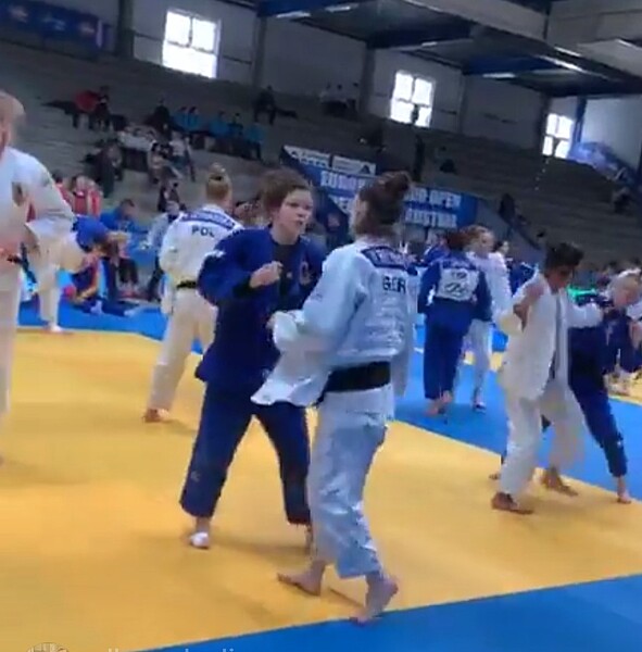 Maschas Gegnerin bis 48kg im ersten Kampf war die Russin Kokaeva. Nach einem harten Kampf konnte Mascha sich mit drei Shidos durchsetzen.